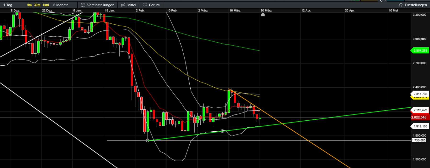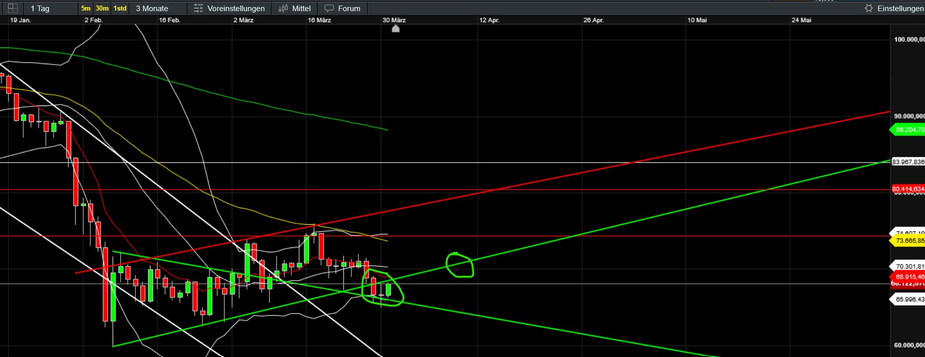 oder dumm gehandelt. Theoretisches Wissen und fatales Zuwiderhandeln weil nicht sein kann, was nicht sein darf. Meine Shortgewinne sind dahin, weil ich einfach den Move zu Long nicht schaffe. Ich bin da wie blöd...
