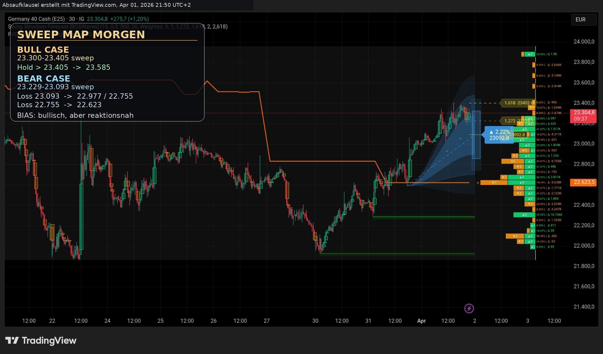 Morgen ist ein Sweep ueber 23.30/23.40 sehr plausibel.