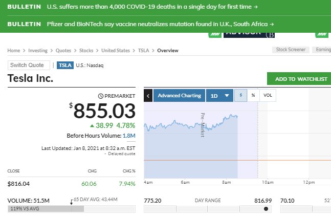 klitsche tesla schon 800 mrd. dollar hoch bewertet.