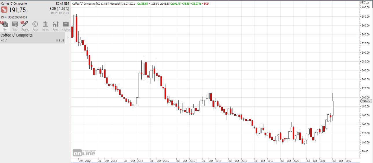 --- in den Massenmedien über hohe Kaffeepreise gejammert wird.