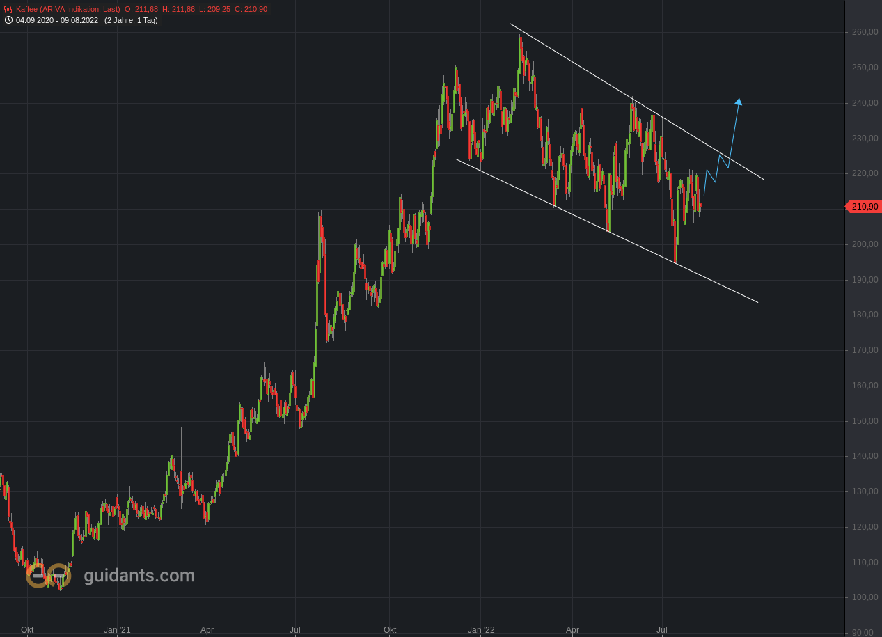 Timing nahezu perfekt. Der Markt konzentriert sich nun auf wichtigere Rohstoffe, die nach oben streben. Die schmackhafte Bohne ist nun ausgereizt und tritt nun die Reise nach Süden an!