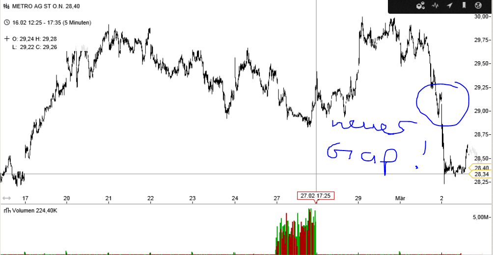 RWE reduziert die Dividende von 3,5 auf 2 € und der Kurs steigt. Ja das könnte doch auch bei Metro klappen.