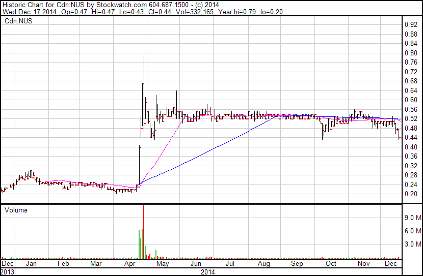 Sollte das Geld die Konten von NUS erreichen,wäre der SP ungefär mit CAN$0,70 fair