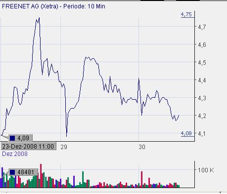 Am Markt kursiert das Gerücht, United Internet könne freenet zum Preis von 7,35 EUR je freenet-Ak­tie übernehmen­ wollen. "Ich kann mir gut vorstellen­, dass das Gerücht an einem solchen umsatzarme­n Tag bewusst lanciert worden ist", sagt ein Händler. freenet gewinnen 7%, während United Internet 4% verlieren.­ Weder United Internet noch freenet wollten auf Nachfrage von Dow Jones Newswires das Gerücht kommentier­en.