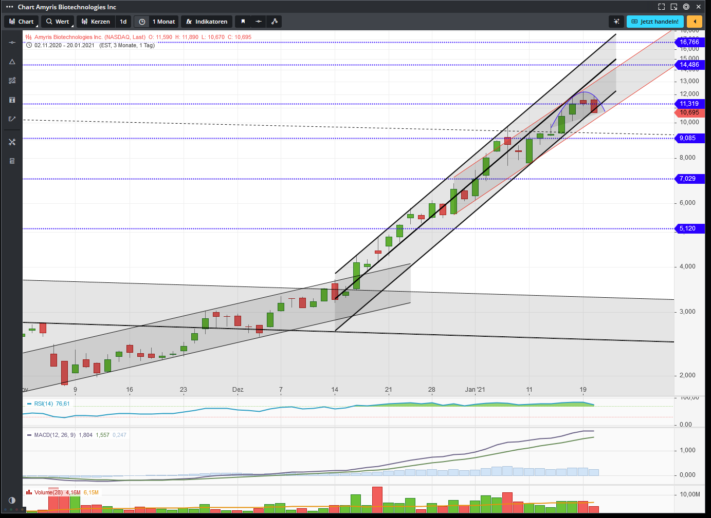 derzeit liegen wir am unteren rand des jüngsten trendkanals - so die amitrader. die story ist nach wie vor intakt - es sind für die nächsten wochen weiter vermeldungen von deals angekündigt. es ist eher die frage, wer noch den mut hat, jetzt rauszugehen - und nicht auf dem falschen fuß erwischt wird ... nur wer im besitz einer glaskugel ist, kann verlässlich sagen, ob wir am ende der woche bei 15 Dollar oder 10 Dollar stehen - an kurse signifikant unter 10 dollar glaube ich nicht so recht ...