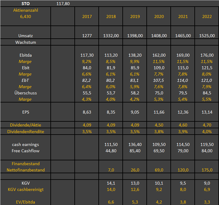 Wer also diese Listen in den Portalen durchgeht und nach hoher DIV-Rendite und niedrigem KGV screent, der kommt aktuell noch gar nicht auf STO. Zudem kann er nicht wissen, dass STO sehr starke Bilanzdaten mit viel Nettocash und einem Vorstand hat, der auch anorganisch stark mit dem Unternehmen wachsen möchte.