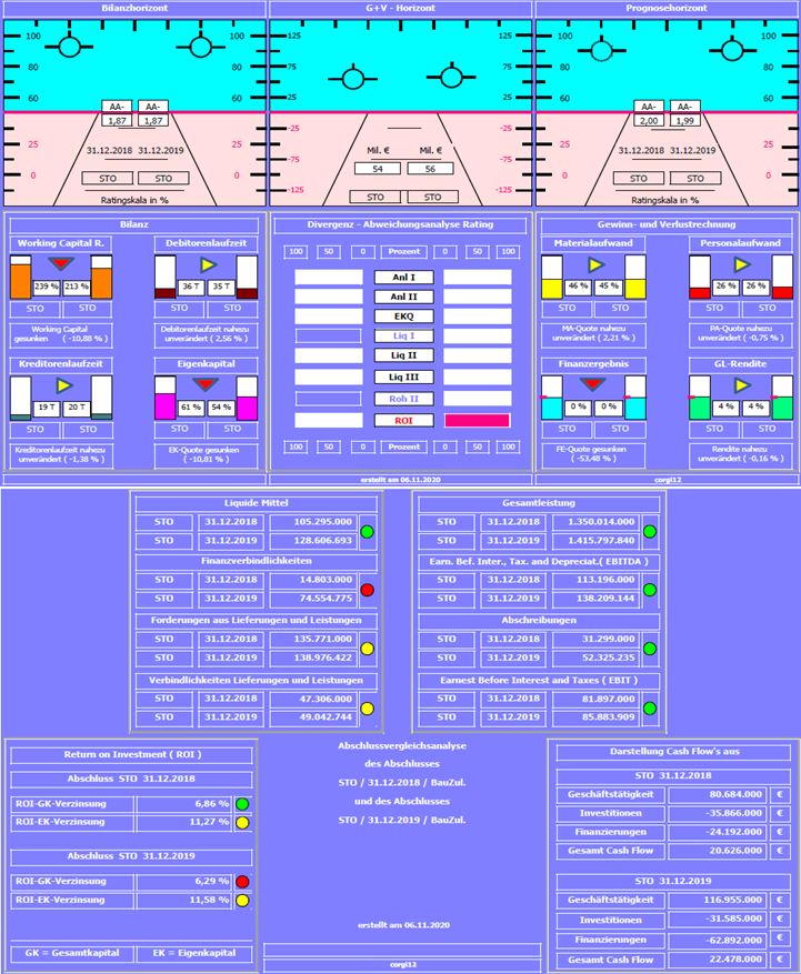 Positiv: Liquiditätskennzahl I konnte gesteigert werden. Rohertrag II minimal verbessert. Gesamtleistung um ca. 5% gestiegen.
