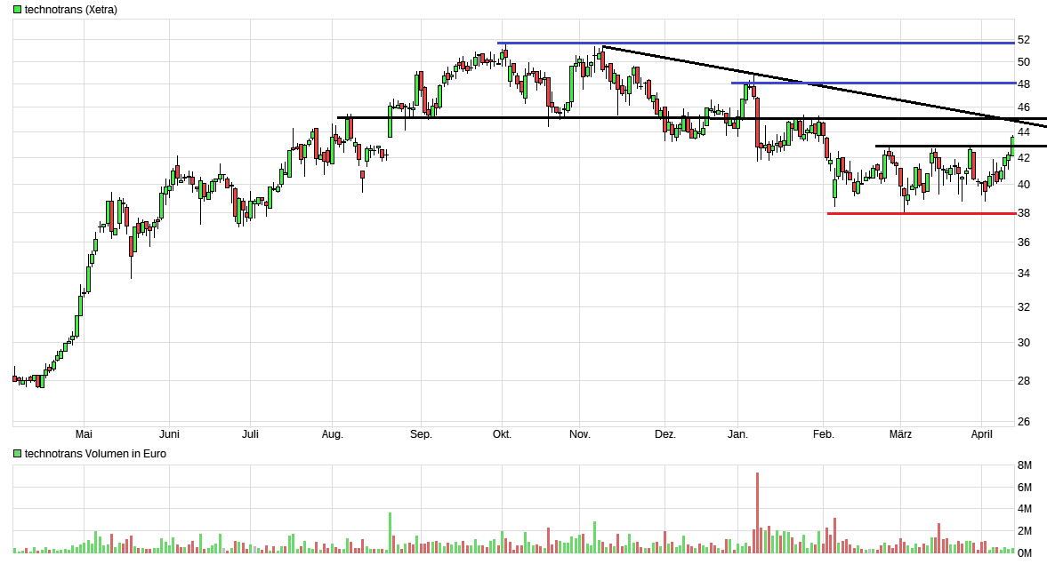Auch in der neuen Ausgabe der Euro am Sonntag (von letzten Samstag) wird Technotrans empfohlen - unter Hinweis auf die gemeldeten Zahlen und auf die erwarteten Umsatz- und Gewinnsteigerungen. Als Kursziel wird dabei 52 genannt.