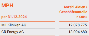 Die präsentierten Zahlen mögen "tadellos sortiert" sein, sie sind aber nicht in jeder Hinsicht tadellos. Kenner der MPH Health Care AG weisen darauf hin, dass sich der aktuelle Net Asset Value (NAV) der MPH (einer Investmentgesellschaft) im Wesentlichen nach dem Kurs der 12.078.775 Aktien der M1 Kliniken AG (der wertvollsten MPH-Beteiligung) richtet: (12.078.775 Aktie * €14,52 Xetra, 13:17:03) = €175.383.813. Je MPH-Aktie entspricht das einem aktuellen MPH-Aktienwert von (€175.383.813 / Number of MPH-shares 4.281.384 =) €40,96.