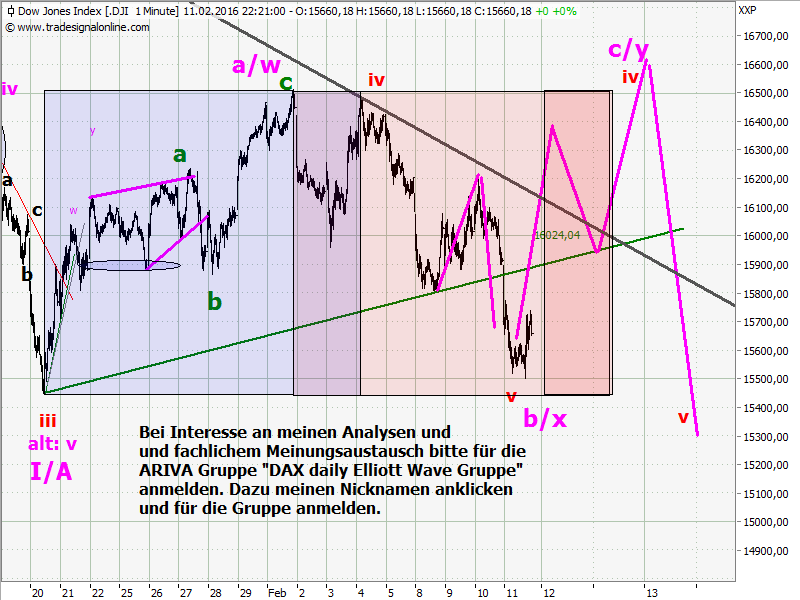 Dax30 findet einfach keine Käufer und befindet sich immer noch in der Welle (b) of [y] of B.Mit dem Heutigem Update möchte ich zeigen das ich die Welle (b) als Komplex-Formation Double Three (Flat-X-Dreieck) zähle.
