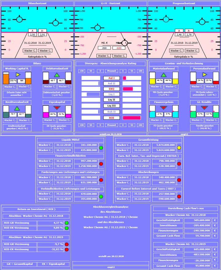 Bilanzratingnote: Die Bilanzratingnote hat sich von 2,48 auf 2,78 verschlechtert. Welche Faktoren (Kennzahlen) dazu beigetragen haben, kann an der Divergenzdarstellung abgelesen werden.