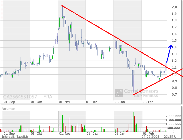 s5g1jk hat es treffend beschrieben. Jeder Deppenbrief hat Freegold im Depot. In Freegold wurde brachial Kapital reingepumpt. Trotzdem läuft Freegold nicht. Wie ich umgestimmt wurde? Cali hat mich anhand eines Beispiels umgestimmt. Schau dir mal Apogee Minerals an. Total ungepusht. Kennt keine Sau. Aber Qualität läuft halt einfach. Fast 100 % in 2008 gelaufen. Ok, Apogee lief letztes Jahr schlecht. Aber umso mehr läuft Apogee seit Anfang 2008. Und besser als Freegold sowieso.