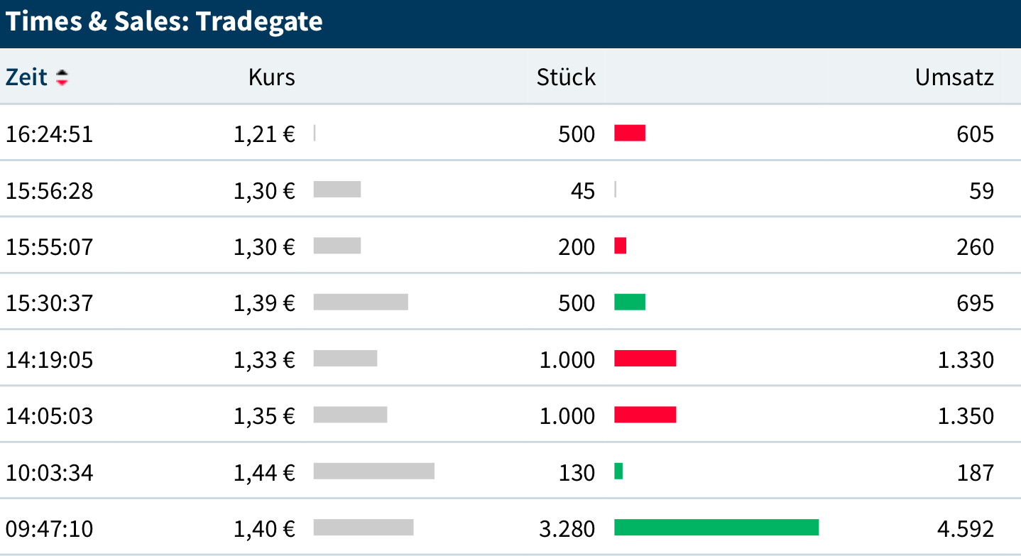 sind. Deshalb macht der Kurs nach oben und unten große Sprünge, da nur wenige Aktien täglich gehandelt werden. Manche Tage gar keine.