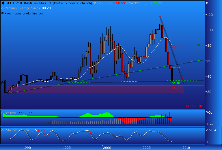 Was der Akki teilweise gemacht hat, überzeugt mich auch nicht immer, meistens jedoch mehr als bei der Konkurrenz. Doch was ist so eine Bank noch realistisch wert? Das weiß wohl niemand so richtig! Ich würde mit Krisenabschlag 60Euro und ohne 100 Euro ansetzen, aber als die 30 erreicht wurden hielt ich es für eine maßlose Unterbewertung. Und falls es ganz schlimm kommen sollte, würde der Staat schon einspringen. Doch dann wären die Zeiten der Großverdiener vorbei und das wird wohl Akki und Co. nach aller Möglichkeit vermeiden. Eine angestrebte Eigenkapitalrendite von 25% auszusprechen ist schon pervers, bis 14% eventuell noch nachvollziehbar, aber ebenfalls schwierig zu erreichen. Wenn ich eine Eigenkapitalrendite von 25% hätte, wäre ich in den letzten 15 Jahren schon ein Millionär geworden, aber: