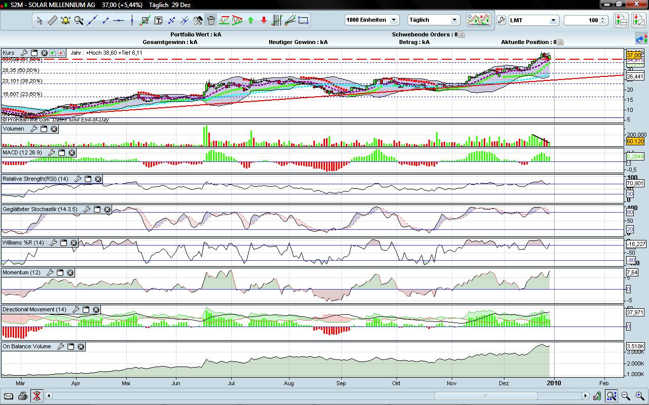 Die Vola ist aber seit Weihnachte­n schon hoch. Gestern hatten wir eine Kursspanne­ von 37,21 € (ganz am Morgen) bis 35,39 €. Langsam überlege ich mir sogar bei dieser hohen Vola und dem sehr vernüftige­n Handelsvol­umina mit der Solar Millenium-­Aktie zu traden.