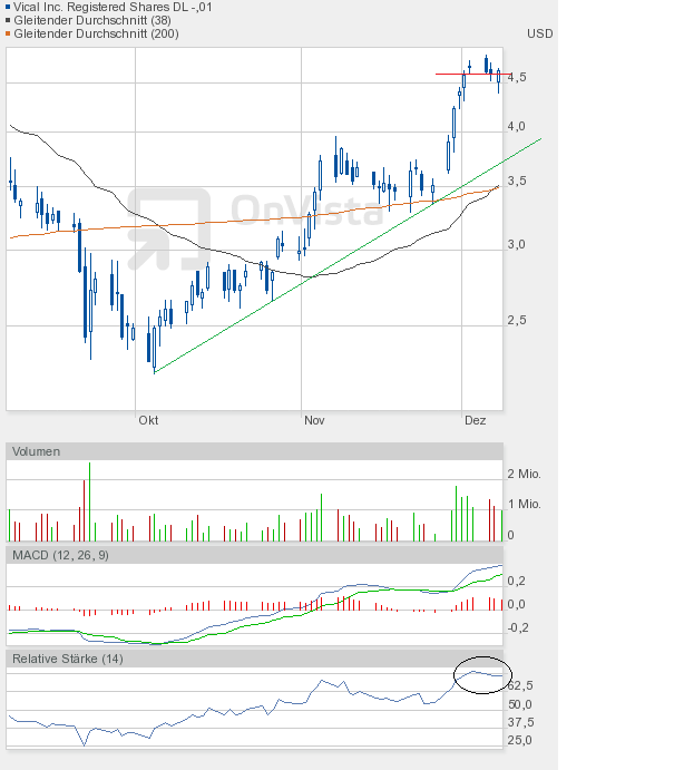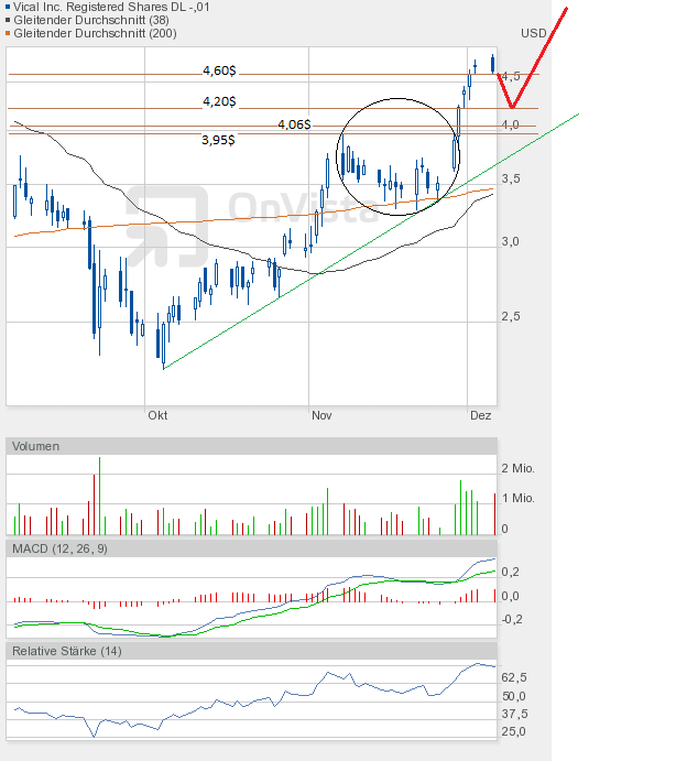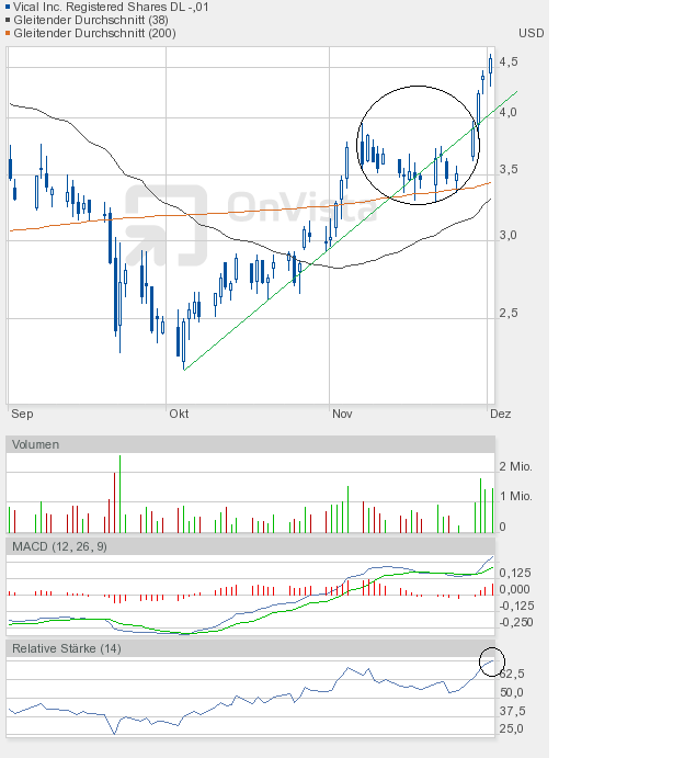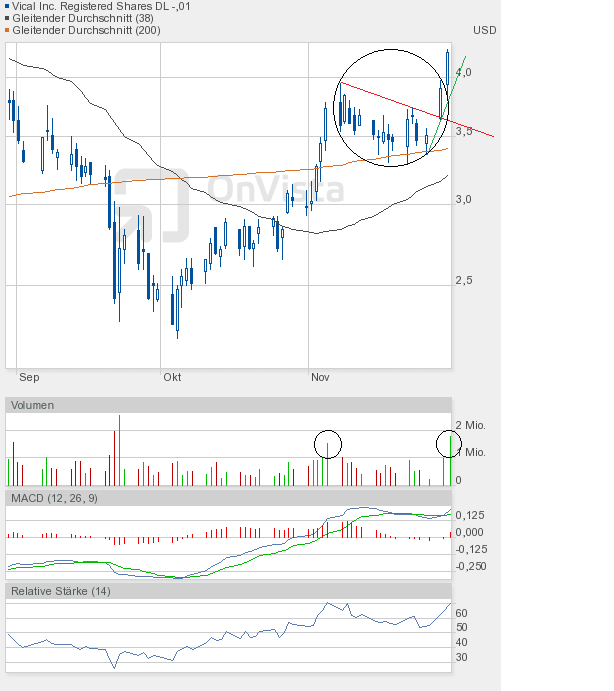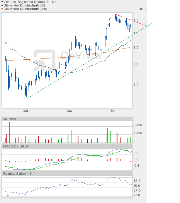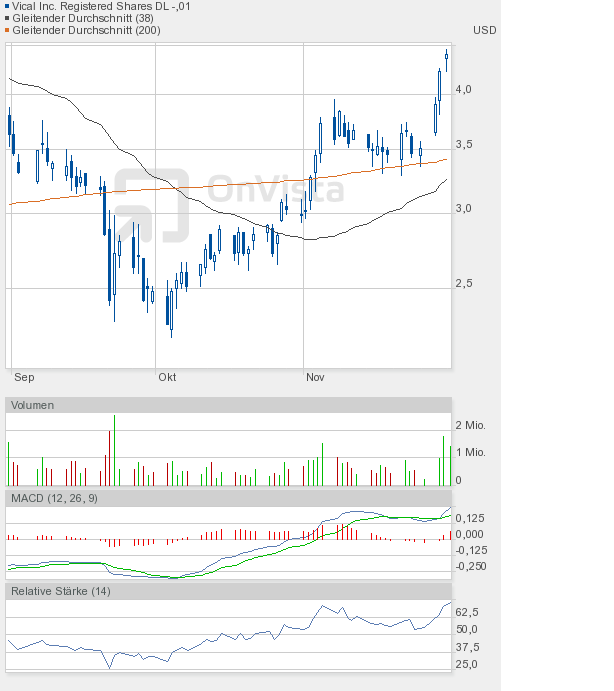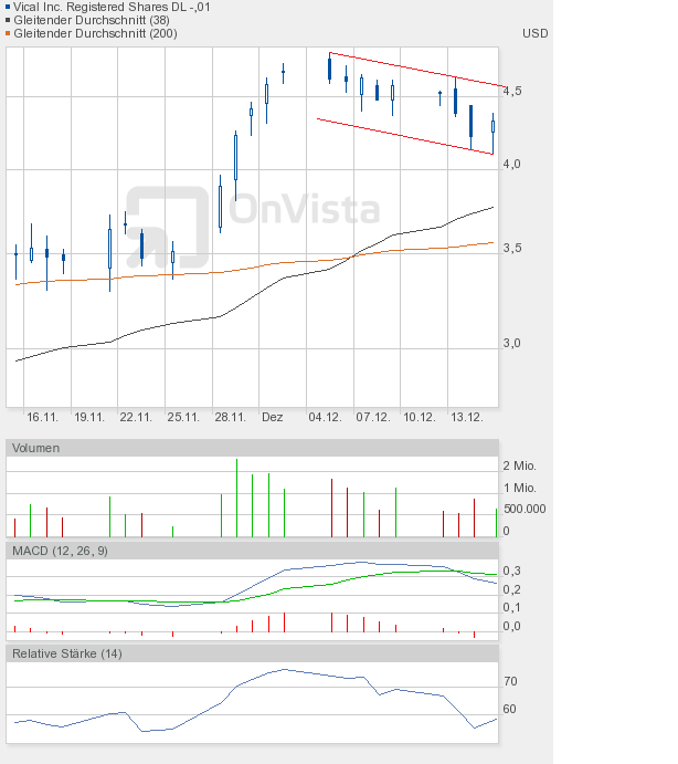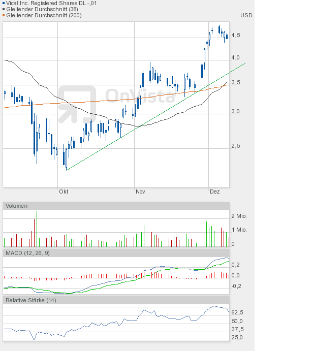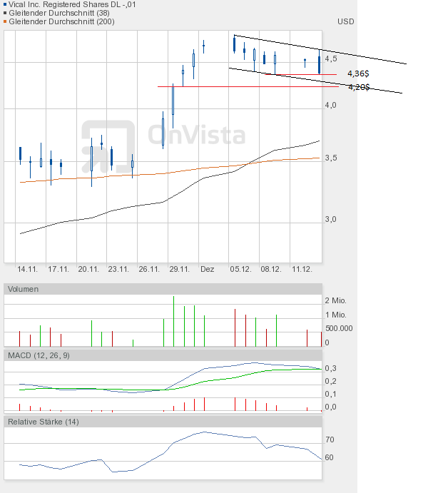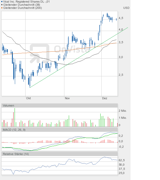 Ich bleibe bei meiner Meinung, dass die Vical-Aktie eine Zwischenkonsolidierung bis 4,20$ braucht, um dann einen richtigen Versuch Richtung 5,30$ starten zu können.