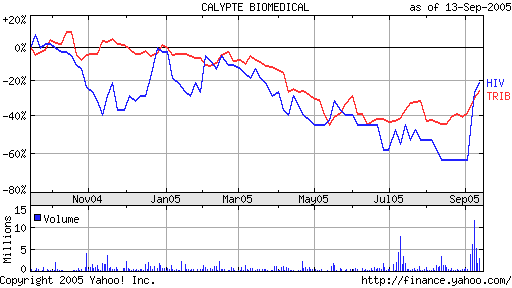 LAKE OSWEGO, Ore., Sept. 15 /PRNewswire-FirstCall/ -- Calypte Biomedical Corporation (Amex: HIV) today announced that the Medical Laboratory & Clinical Scientists Council of Zimbabwe has issued notification that the Calypte Aware(TM) HIV-1/2 BSP rapid (blood) test has been successfully evaluated and cleared for commercial sale in Zimbabwe.