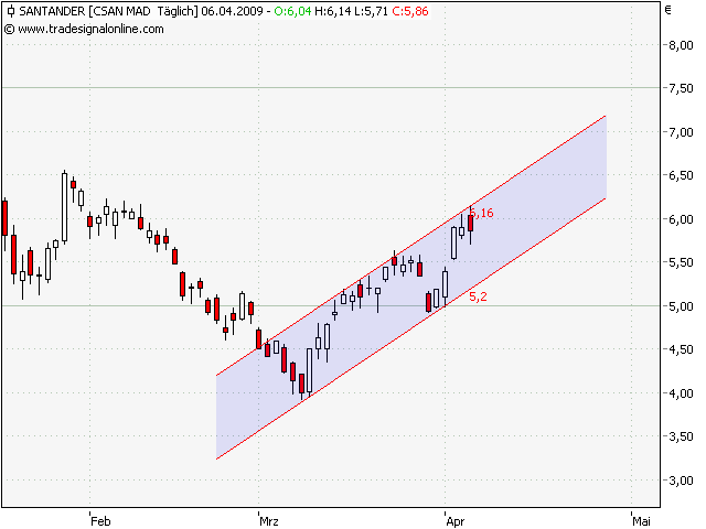 Haltemarke wäre doch die 3 EUR ;-) (siehe #48) Allerdings glaub ich nicht, dass es so weit runter gehen wird. Du darfst nicht vergessen, dass Santander eine der größten Europäischen Banken ist und im EUROSTOXX. Wenn der Markt und speziell die Branche verprügelt wird, dann auch Santander!