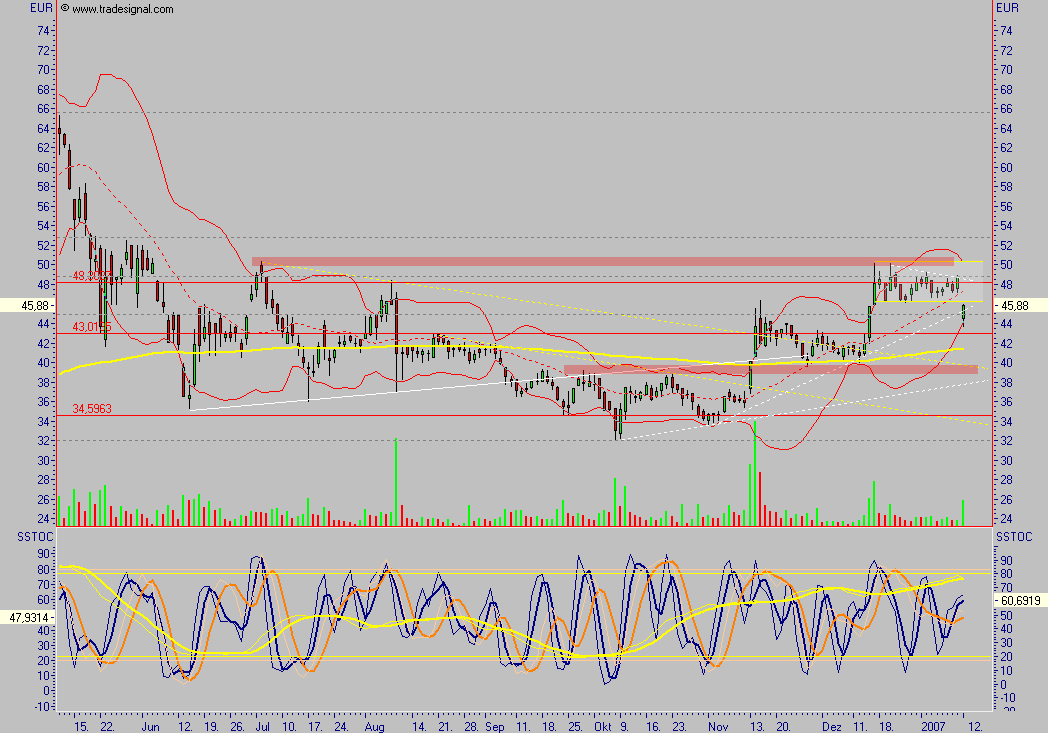aber wer um die 40 eingekauft hat sollte ja zumindest noch im Plus sein, ich für meinen Teil werde halten, dadurch erhöht sich allenfalls die Profitabilität für 2007. Ich hoffe mal, daß die Angaben so korrekt sind. Trotzdem ist es natürlich traurig, aber in der Warnungssaison kann sowas jederzeit eintrudeln, die Frage ist natürlich, warum soetwas erst in 2007 bekannt gegeben wird, das hätte man ja spätestens am 31.12.06 wissen müssen.