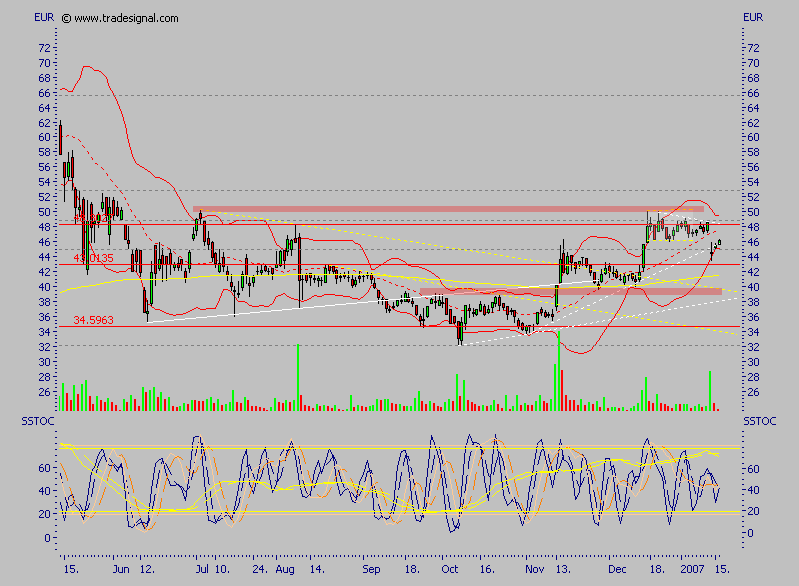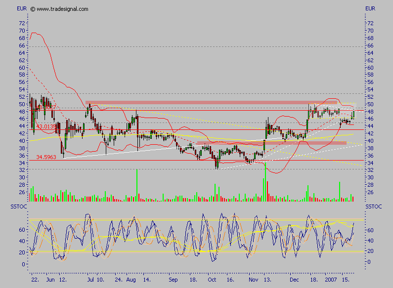 Ein Ausgruch aus einer engen Range kann immer zu beiden Seiten erfolgen, bisher würde ich es als Flag einschätzen, aber ein Ausbruch wurde noch nicht generiert, wenn das Verhältnis 1:2 ist, so scheinen doppelt so viele darauf zu setzen, daß die Aktie unten durchbrechen wird.