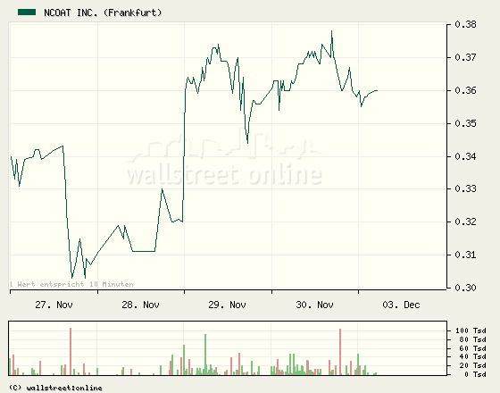NCOAT ausgabe war bei 0,65 oder so. Jetzt ist er bei 0,369. Ich gehe mal davon aus das dieser Kurs weiter steigt, aber ob dies schnell gehen wird könnte man jetzt noch nicht sagen.