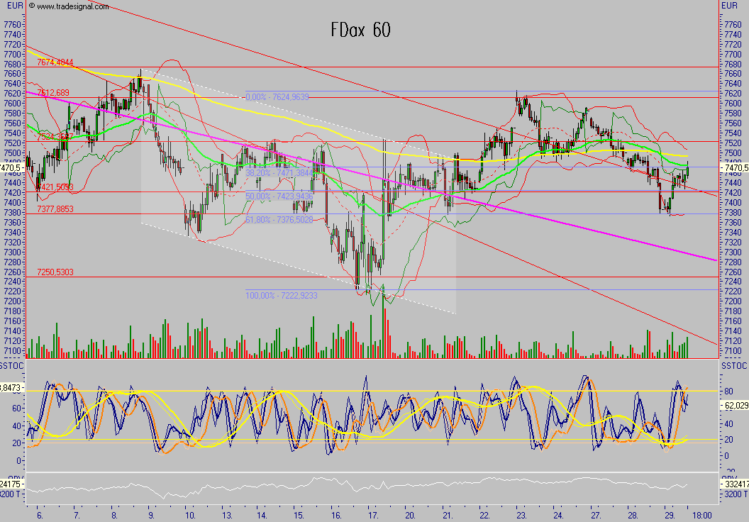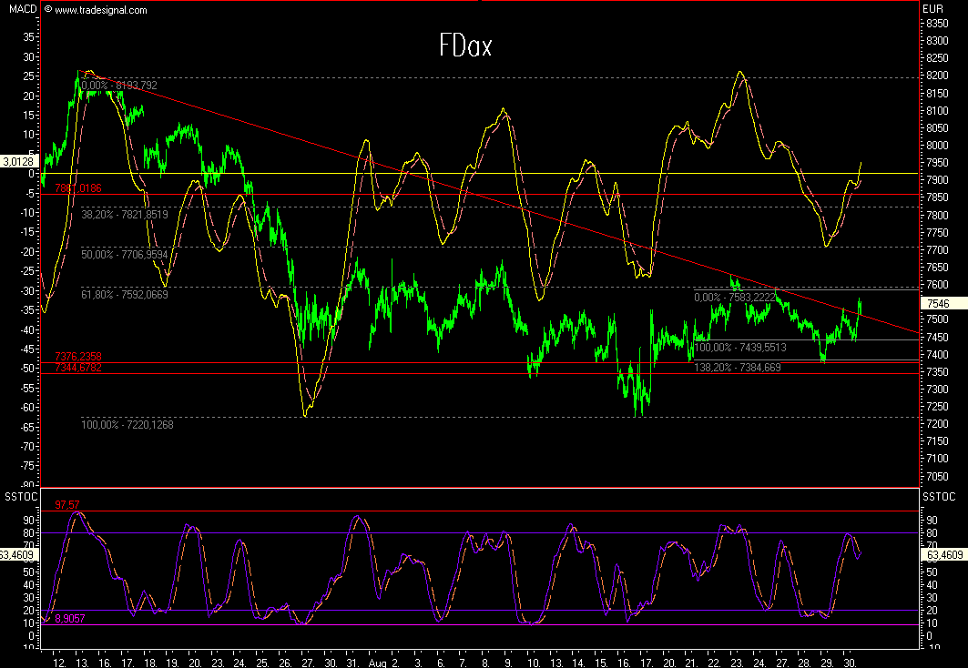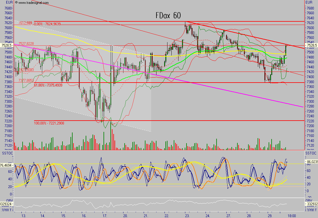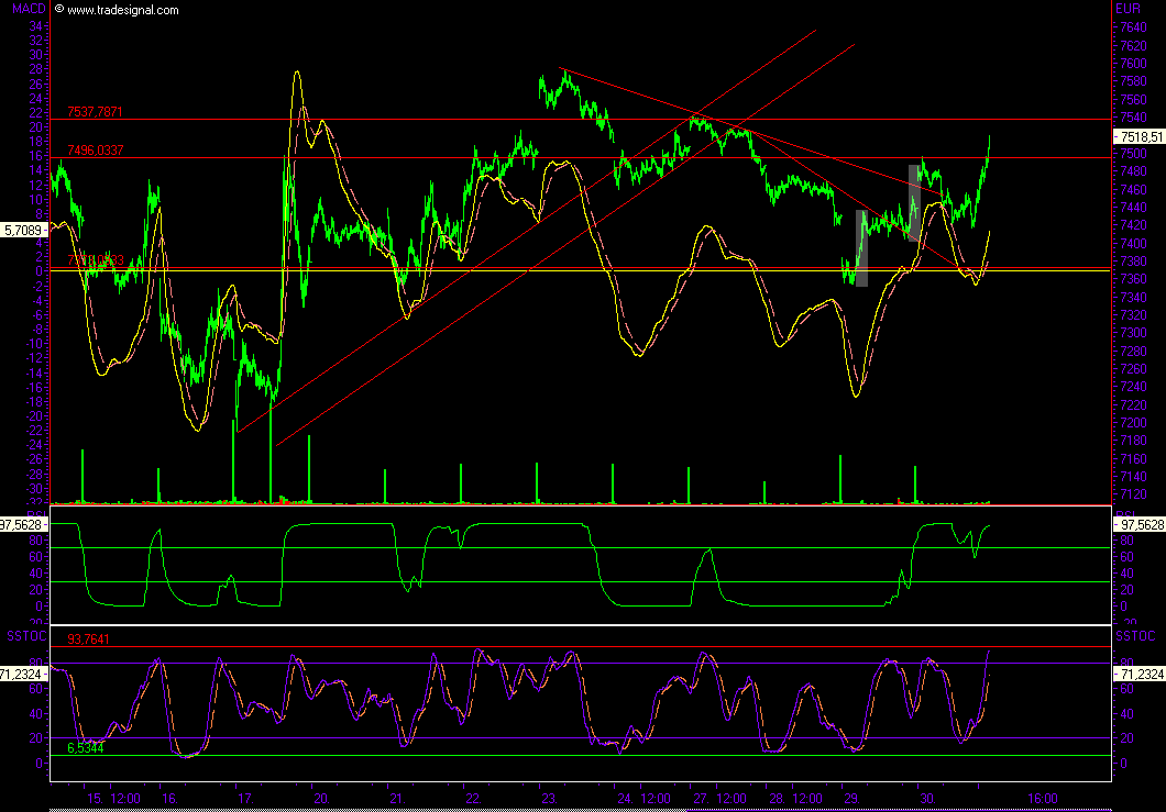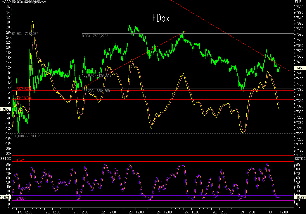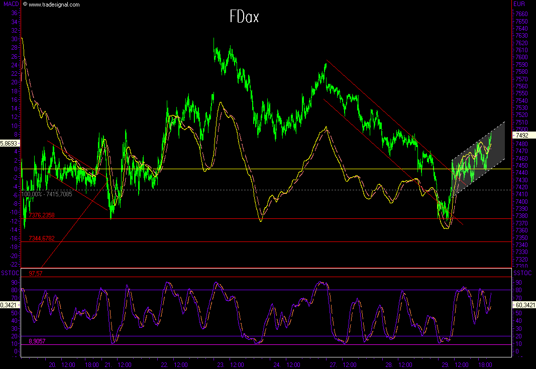 Abwärts gehts bis jetzt auf den Widerstand bei 7480 und erstmal einsammeln.