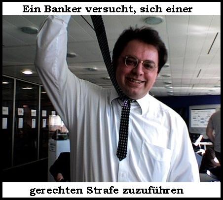 Das sind Banker. Die mögen sich nicht. Vertrauen tun sie sich auch nicht. Das siehst du ja. Keiner traut dem anderen über den Weg. Du sagst, das sieht gefährlich aus?! Da hast du Recht. Ist es auch. Alle von denen haben schon eine Menge auf dem Gewissen. Frag mal die Lehman-Brüder aus der Nachbarschft. Du meinst die seien alle so anständig angezogen. Ja. Das hat aber nichts zu sagen. Fein sind die nicht.