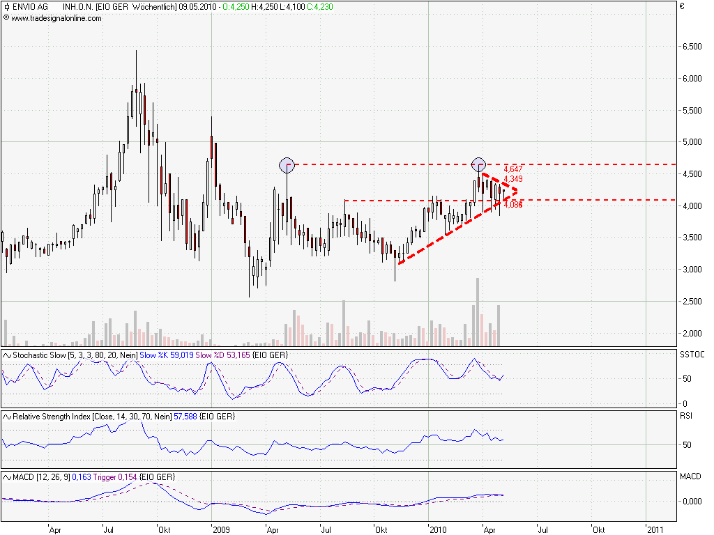 Langfristig haben wir ein Doppelboden gesehen, liegen oberhalb des mittleren Bollinger. Allerdings ist der Bereich bis 12 Euro ein starker Widerstandsbereich. Wenn ich da rein gehen würde mit Sl kapp unter 9 Euro, tue ich aber nicht.