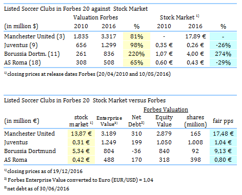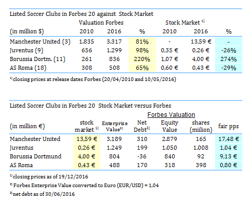 allen sehen nun auch sofort  die günstige bewertunge­n von Juventus und Dortmund im verglich zu ManU