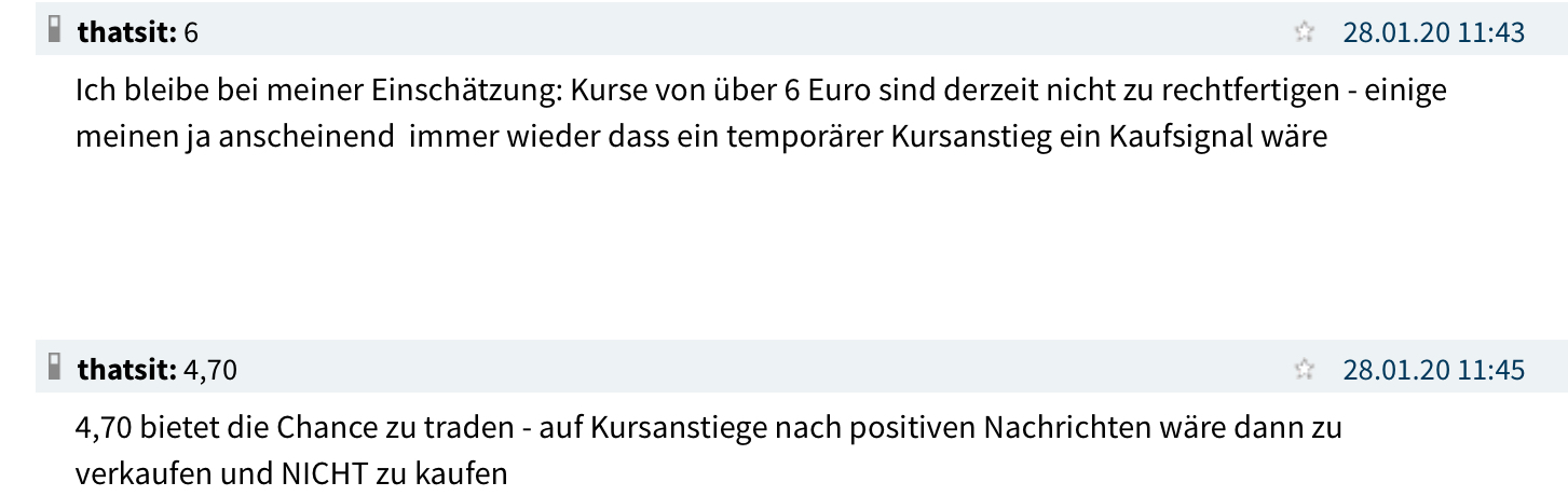 thatsit, du bist ja der Meinung das bei positiven Meldungen der Kurs erstmal runter geht weil alle verkaufen. Bin seit Dezember bei 3,60 eingestiegen. Soll ich nun abwarten oder verkaufen.... ????