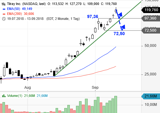 Tilray Inc. ((TLRY [NGS] - $ 114.69 9,74 (9,28%)