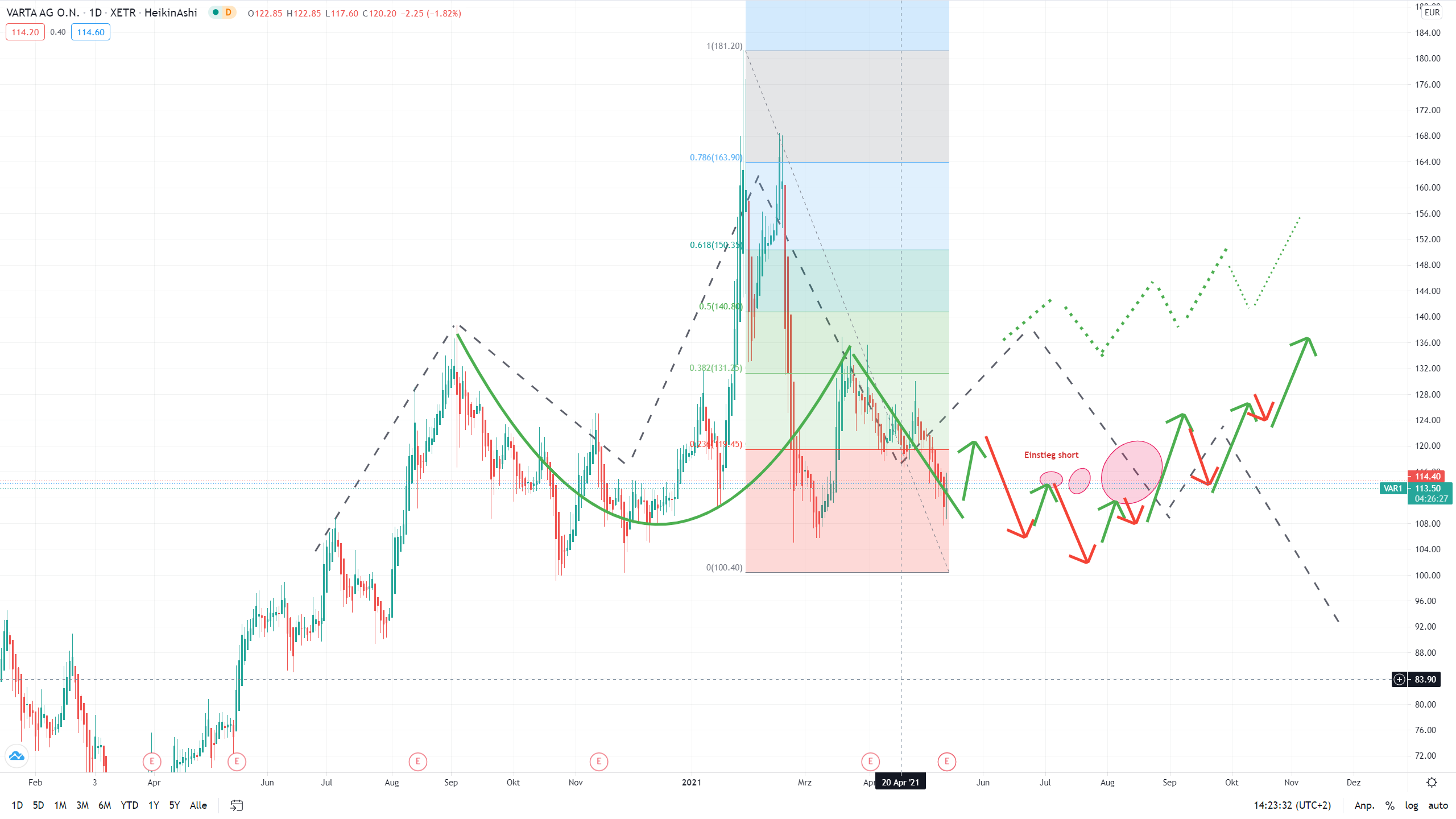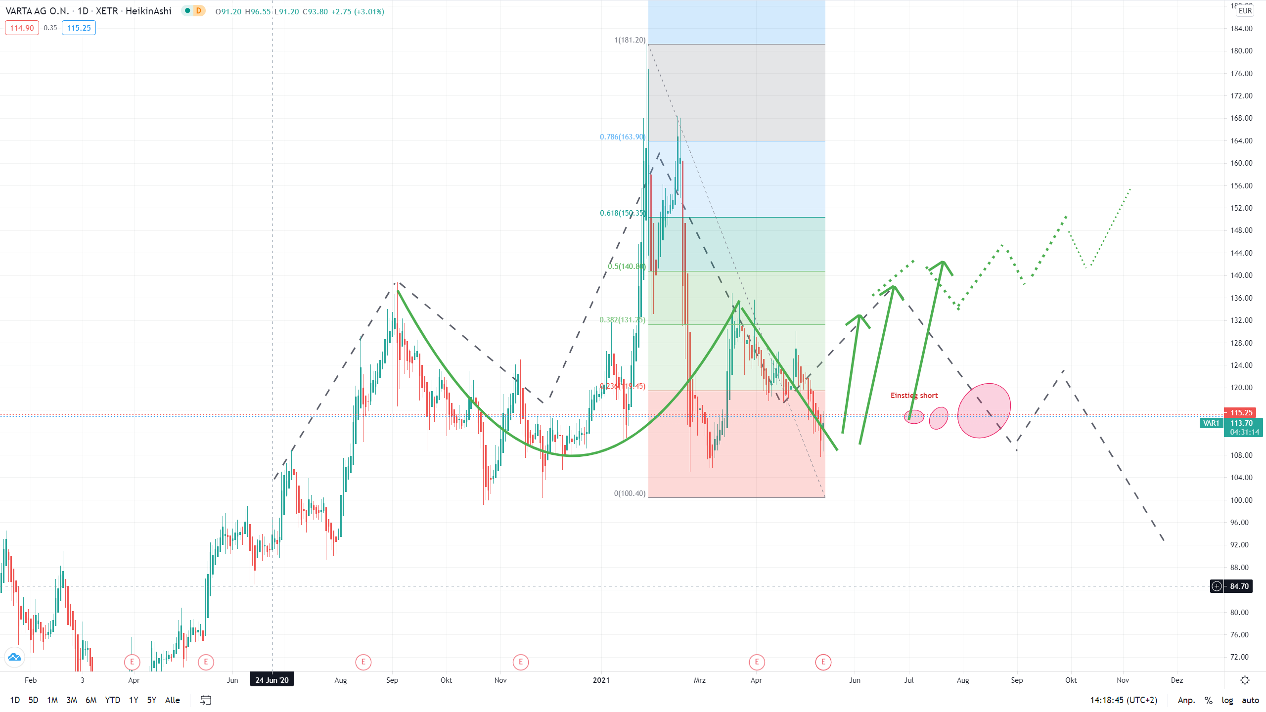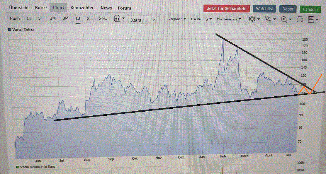 Wenn jetzt schon Dynamik aufgebaut würde, besteht tatsächlich eine reale Chance die 100.-€ noch einmal von unten zu sehen.