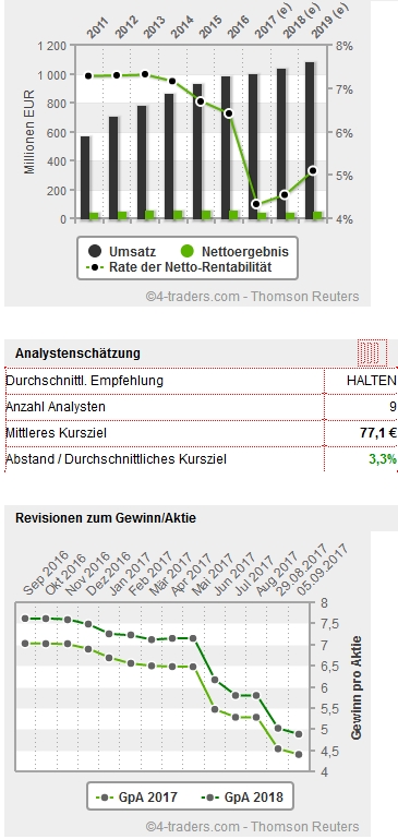 Die 75 € sollten halten, denn so tief haben wir die Aktie lange nicht mehr gesehen.