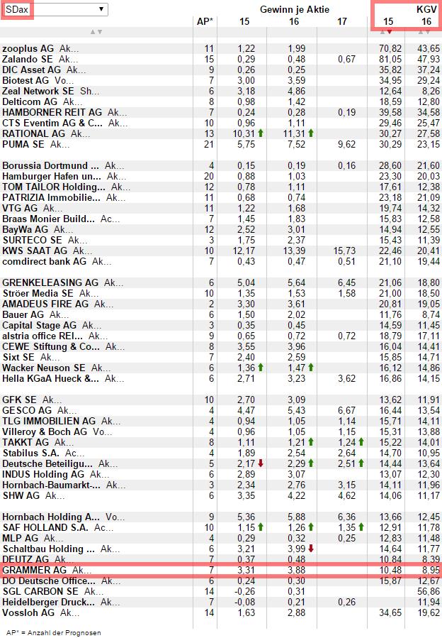 Grammer ist nachzügler­ mit kgv 2015e von 10,5, der kurs hat nachholbed­arf