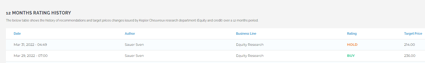 Auch Warburg Research hebt Kursziel an auf 245 EUR