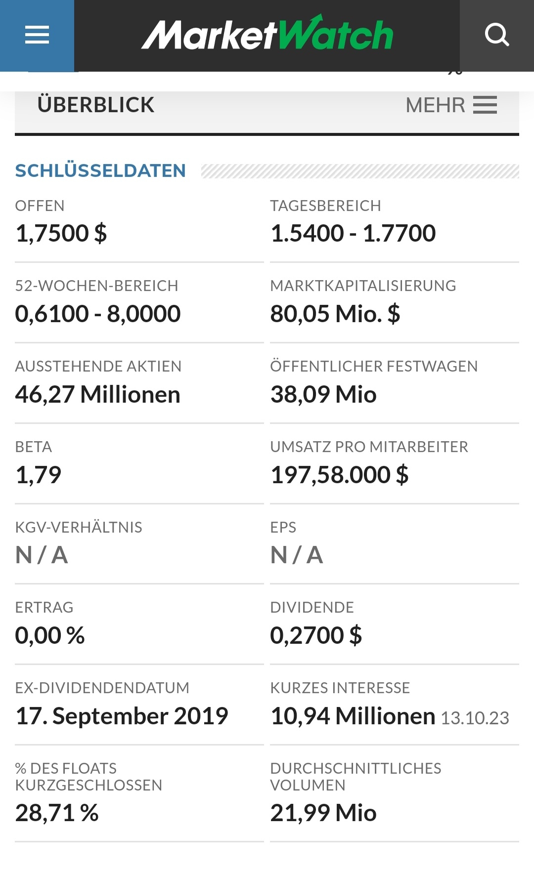 auch bedingt durch die Shortseller.