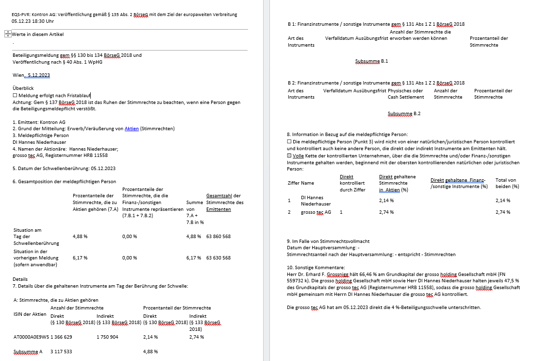 Auch wenn er zB in einen Fonds investierte, der Kontron-Aktien hält, wäre HN für Fonds-Transaktionen in Kontron dann nicht meldepflichtig. Ist bei Grossotec im Prinzip nicht anders, wenn er keine Kontrolle mehr hat.