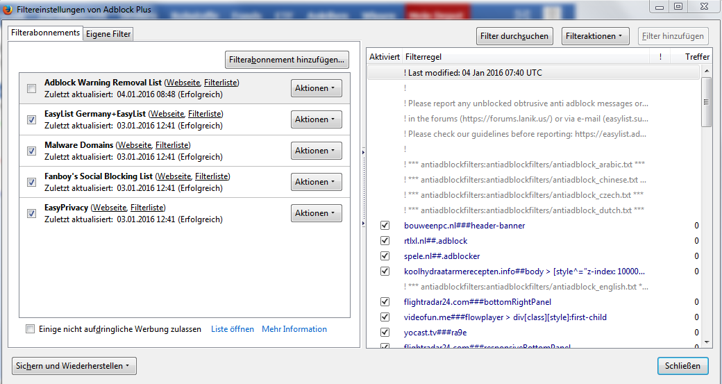 Firefox/Ex­tras/Adblo­ckplus/Fil­tereinstel­lungen