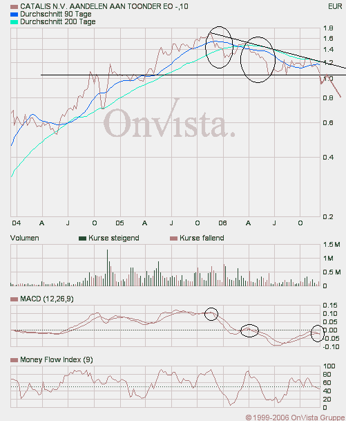sieht das im Moment auch net grad rosig aus... MACD liefert im Langfristchart grad ein Verkaufssignal (nach den letzten beiden Verkaufssignalen gab´s enorme Verluste!), Moneyflow läuft ins Negative und wenn die 1,05 net hält, dann gehts schnell Richtung 0,95 bzw. 0,80 Euro...