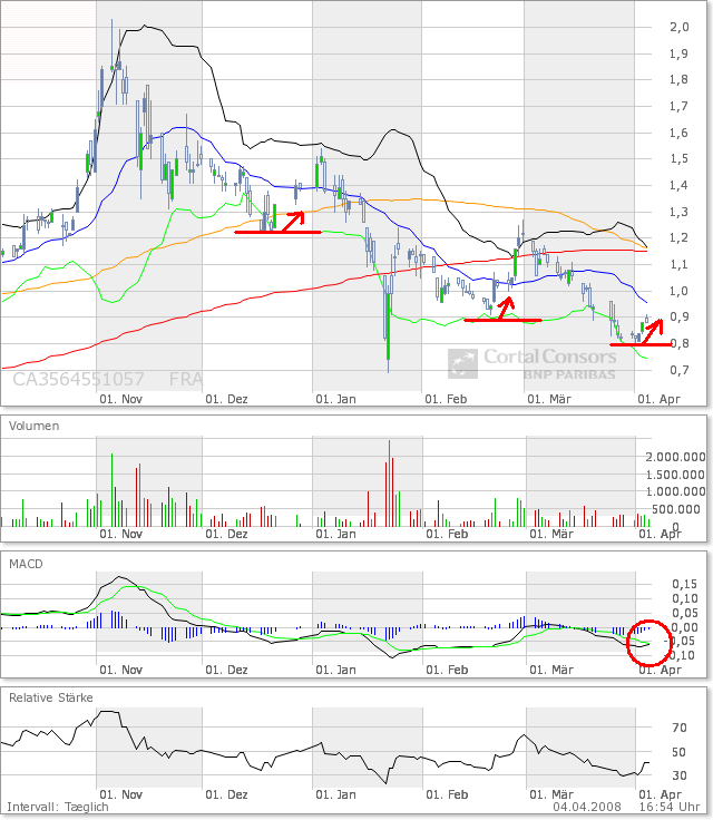 Schaut man sich den Chart an, so sieht man das Freegold bei 80 Cent schön am