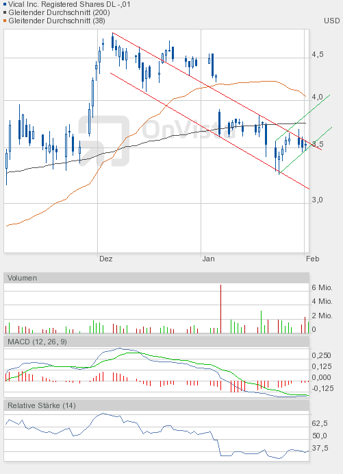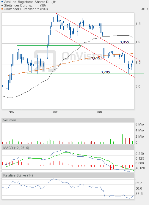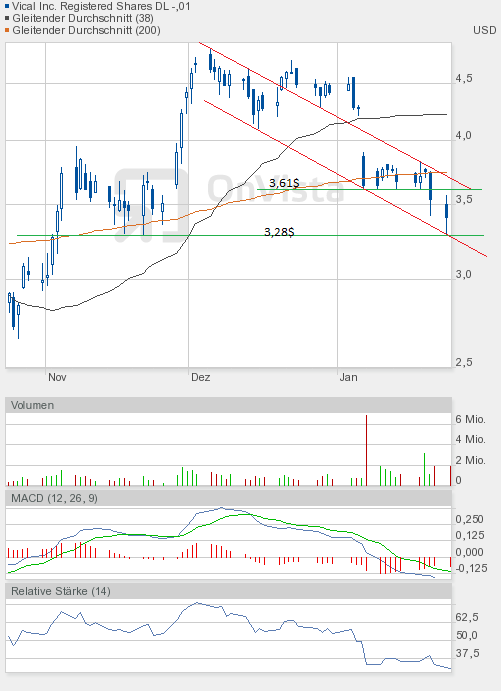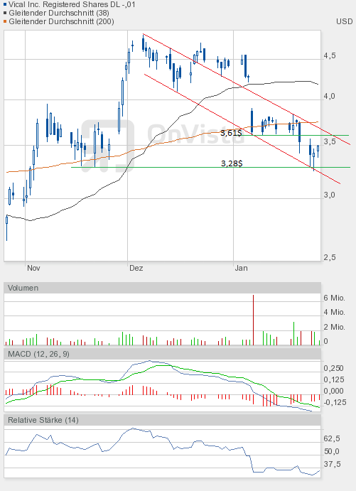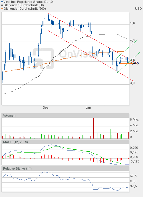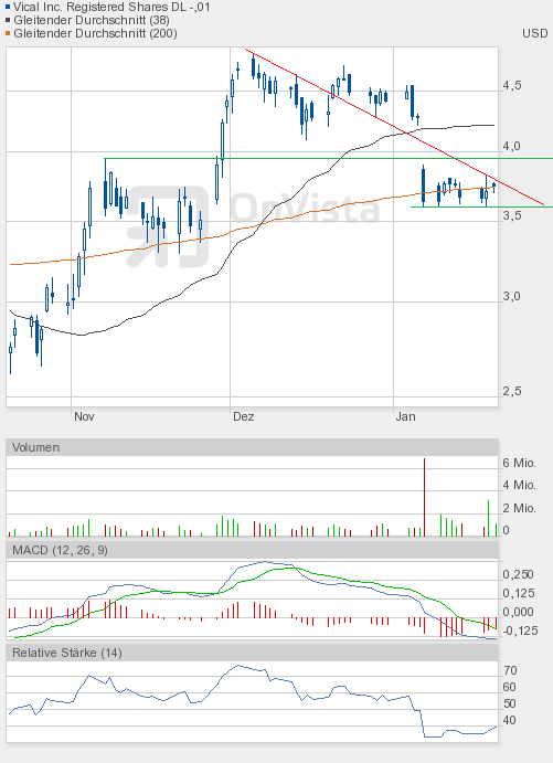 Der heutige Handelverlauf war wie die letzten Tage in Bezug zu den Gesamtmärkten eher enttäuschend. Vical kann weiterhin nicht von der positiven Stimmung profitieren. Aber zum Handelsschluss gelang immerhin noch ein kleiner Achtungserfolg. Der Schlusskurs lag über der 200-Tage-Linie.