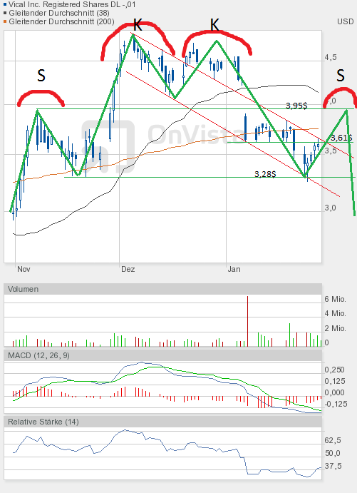 Realtime 3,67$. Nun wäre der Weg bis 3,95$ frei. Vical könnte also ordentlich verlorenen Boden gegenüber den Gesamtmärkten gutmachen. Aber immer schön an die mögliche SKKS-Formation denken.