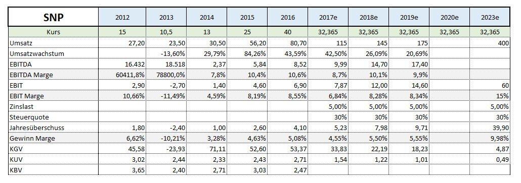 Operativ schafft SNP keine 20% Wachstum und die Margen brechen selbst bei dem aktuellen Wachstum ein. SNP schreibst aktuell Verluste!