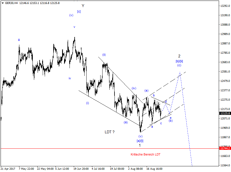 Höchstwahrscheinlich bildet sich die Welle iv als Triangle aus, aber kann auch Expanding-Flat werden.