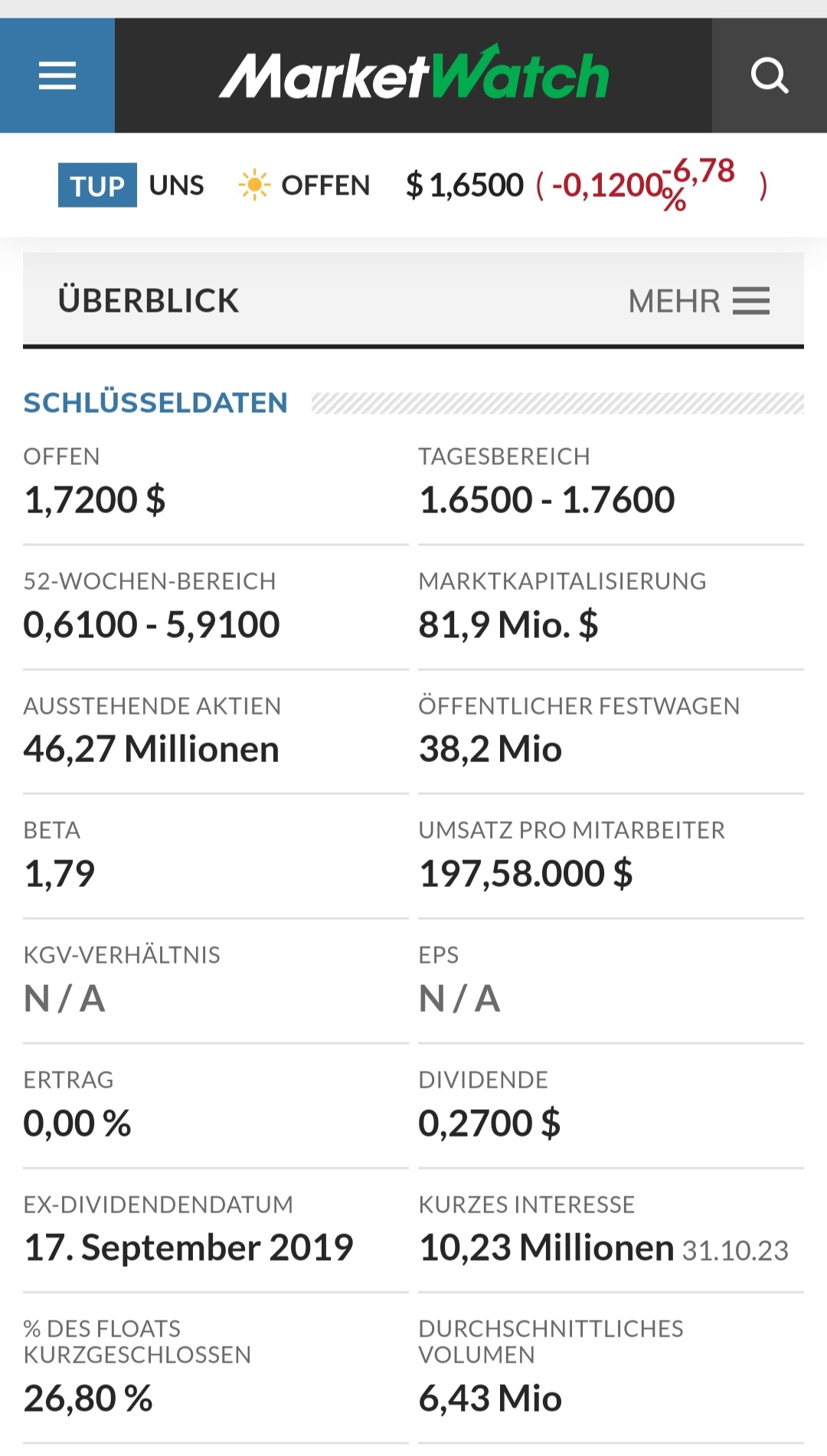 Tupperware (TUP) Aktie - 4er KGV günstig genug?