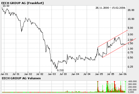 Hamburg, 19. Januar 2006. Die EECH GROUP AG (ISIN: DE0006852809), Hamburg, wird ab dem 24. Januar 2006 die Inhaber-Teilschuldverschreibung "Art Invest 2006" emittieren. Die Bundesanstalt für Finanzdienstleistungsaufsicht hat heute die entsprechende Genehmigung erteilt. Die Inhaber-Teilschuldverschreibung hat ein Emissionsvolumen von EUR 25 Mio., eine Laufzeit von 5 Jahren und gewährt den Anlegern einen Zinssatz von 7 % p.a. Sie dient zur Finanzierung des Geschäftsbereiches Kunst und stellt die planmäßige Umsetzung der Expansion in diesem Geschäftsbereich sicher. Die EECH GROUP AG hat auf der außerordentlichen Hauptversammlung am 15. November 2005 die Neuausrichtung des Unternehmens beschlossen und ist mit der Umsetzung voll im Plan. Die Emission der Unternehmensanleihe ist ein weiterer wichtiger Schritt in der strategischen Ausrichtung des Konzerns.