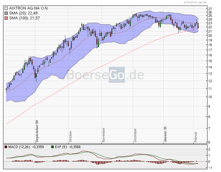 Seit diesem Hoch konsolidiert die Aktie. Im heutigen Handel steht die Aktie stärker unter Druck und verliert aktuell fast 4,5%. Damit fällt der Wert fast auf das bisherige Konsolidierungstief bei 20,45 Euro zurück.