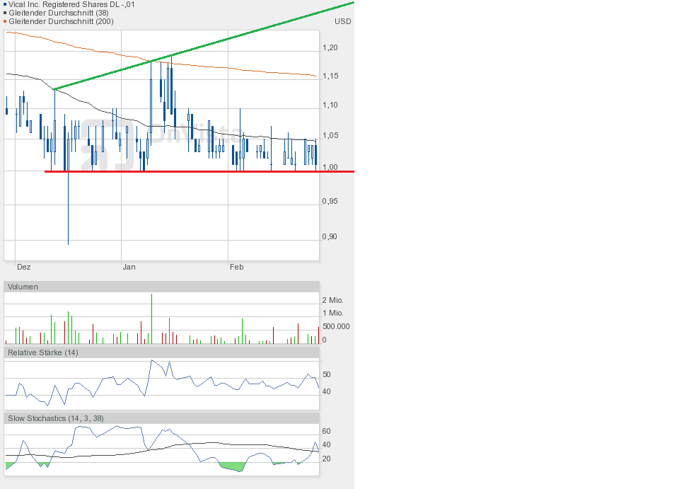 Es bleibt beim Ausbruch mit 1,04$ per Schlusskurs. Alles andere ist wenig erwähnenswert.