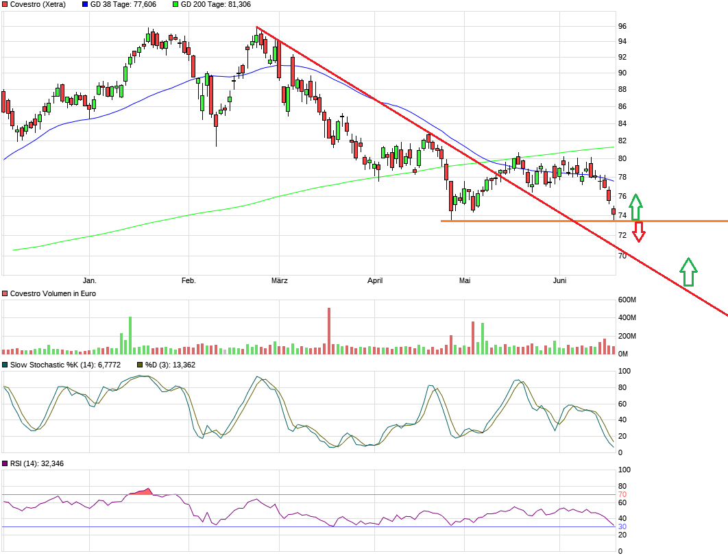Bis dahin sei zufrieden, dass Covestro so günstig kaufen kann. Irgendwann muss dann halt aus rein fundamentalen Gründen der Druck zu groß werden und den Kurs über die 80-81 € bringen. Dann hätte man technisch und psychologisch auch wieder viel Potenzial. Ob 100 € und mehr fundamental gerechtfertigt wären, sei mal dahin gestellt.