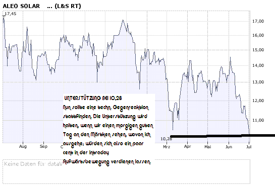 aleo hatte gestern eine Sonderbewegung, die anderen Solarwerte sind nicht gestiegen. Wenn es ersol gewesen ist, dann hätte es bei anderen Solarwerten m.E. auch zucken müssen. Richtig ist, dass gewisser Nachholbedarf bestand. Andererseits könnte ich mir vorstellen, dass der Zug jetzt bald abfährt, lange genug gedauert hätte es ja schon.